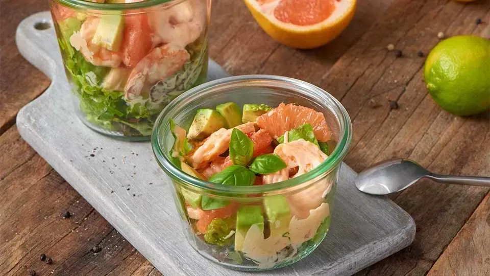 Przygotowanie: W misce wymieszaj krewetki, pokrojone awokado i grejpfrut. W osobnej miseczce połącz majonez z sokiem z limonki, solą i pieprzem. Dodaj sos do mieszanki krewetek i delikatnie wymieszaj. Podawaj na liściach sałaty, dekorując dodatkowym awokado lub plasterkami limonki.